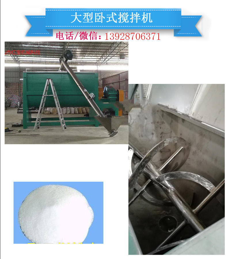 5、能耗低:裝機功率小、同時攪拌量少、原材料少量均勻進入臥式攪拌機而極易混合均勻。